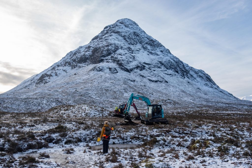 Our team carried out works across four spectacular but ecologically delicate locations: Glencoe, Glen Etive, Loch Eilde Mor, and Glen Shieldaig.