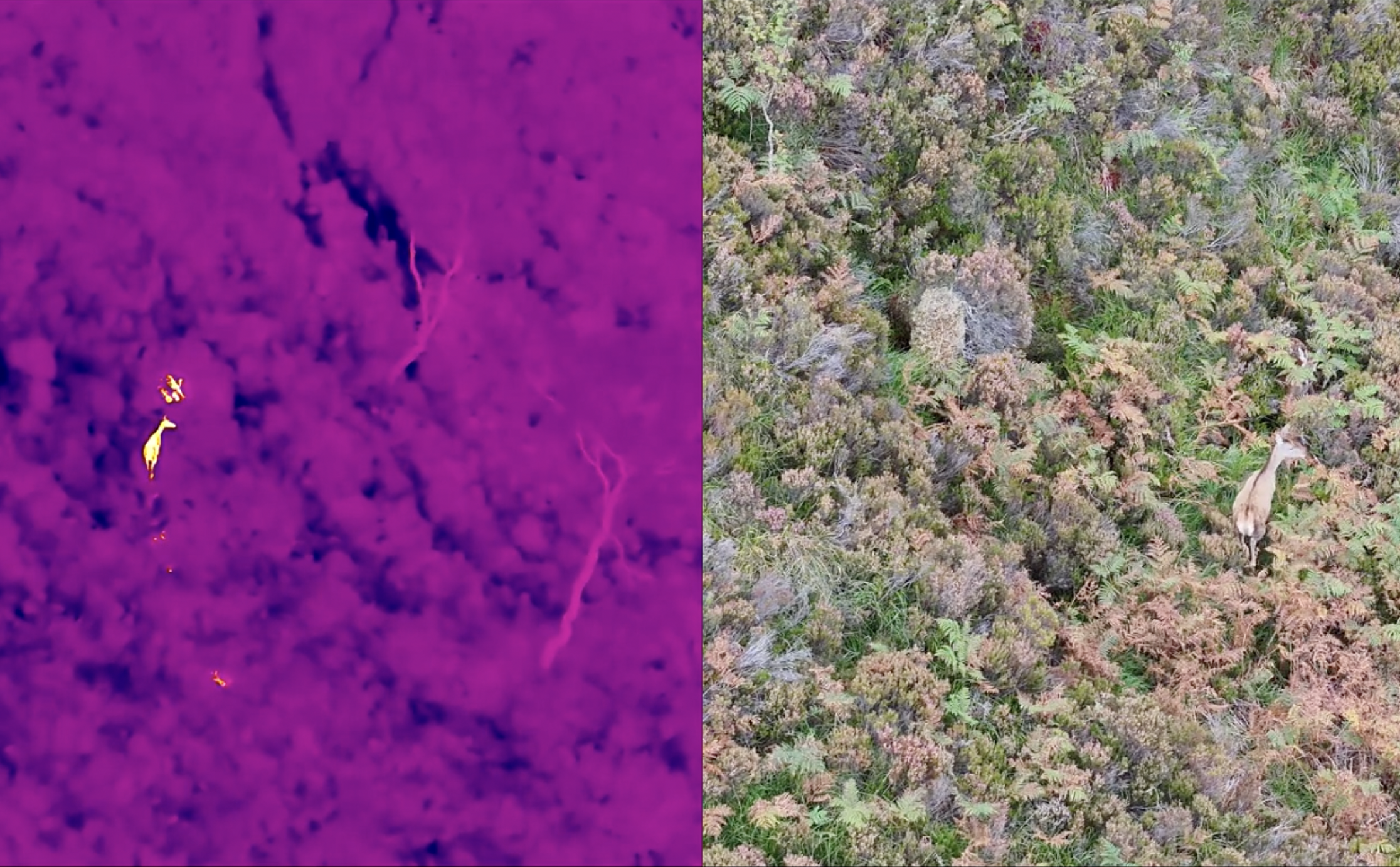We’re excited to introduce our new thermal drone survey service, a cutting-edge solution for efficient and non-intrusive land management. Our state-of-the-art thermal drone can quickly and accurately survey large areas, detecting the heat signatures of wildlife such as red deer. This technology is ideal for rapid population counts and for locating animals in challenging terrain or dense foliage. By providing accurate data, our thermal drone surveys help you protect valuable assets, such as newly planted trees, and support informed wildlife management decisions with minimal disturbance to the environment.